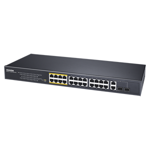 Vivotek Unmanaged 26 port switch, 24 PoE, 2 Gigabit Combo, 8 ports extend mode (250m@10Mbps), PoE Budget 380W, (AW-FGT-260F-380,AUN) Operating Temp 0 - 50?C