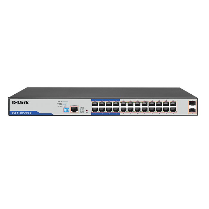 DLINK 26-Port Gigabit WebSmart PoE+ Switch with 24 PoE+ ports (8 with Long Reach PoE+) and 2 SFP Ports, 230W