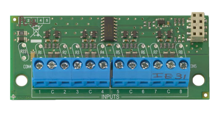 The ATS608 is an 8-way input expansion module designed for Axon series panels, providing additional input capacity for enhanced system functionality. To minimize space requirements, the ATS608 is a plug-in module that connects directly to the main control panel PCB, eliminating the need for separate housing.