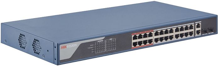 HIKVISION SWITCH 24 POE PORTS, 2 X GIGABIT RJ45/SFP UPLINKS, SMART MANAGED, 370W (3E1326P)