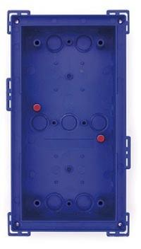 Suitable for:.modules, outdoors.The blue housing is firmly connected to the subsurface or brick work. It can also be used to ensure easy installation in cavities: Drill opening, position housing and screw tightly in place; the retaining wings, which automatically swing out, secure the housing, while the plastic bars at the edge of the housing prevent it from sliding into the cavity..Required flushmounting opening: 117.218 mm (width.height).Permissible wall thickness for cavity installation:.to 27 mm