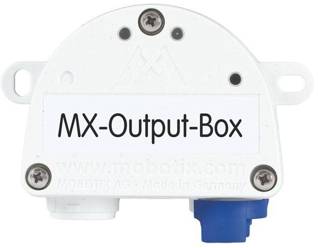 Weatherproof connection of external devices and power relays.Connection to the camera via MxBus.Six self-powered outputs (12 V, each 10 mA).Two isolated outputs (can be switched to degreeself-powered degree using.jumper: 12 V, max. 50 mA).Protection class IP66/IK07, -30 to 60 degreeC.-22 to 140 degreeF.Box can be mounted safely out of reach in the wall mounts of M1x, M2x, D1x, D2x