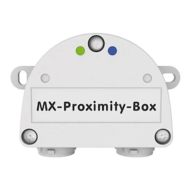 Weatherproof proximity sensor for MOBOTIX systems.Accurate detection of approaching objects based on radar microwave technology.Covered area (horizontal.vertical): 80 degree.34 degree.Detection range: upt to 8m/26 ft. (person), up to 20m/66 ft. (vehicle).Camera connection and supply via MxBus.Protection class IP66/IK07, -20 to 60 degreeC.-4 to 140 degreeF.Box can also be mounted behind walls (e.g. wooden, plastic, glass or dry walls).It is not possible to install the MX-Proximity-Box behind some materials since they absorb or reflect the radar waves (e.g., metal or metal-coated surfaces). Other materials are better suited since they absorb radar waves only slightly (e.g., uncoated glass, plastics, various wood-based materials, drywall).