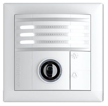 Hemispheric IP door station camera with.Megapixel Moonlight Sensor, B/W (night).ONVIF.compliant Mx6 system platform (2nd generation) with H.264, MxPEG+ and M-JPEG.HD premium fisheye lens B016 (focal length 1.6 mm, f/2.0, 180 degree.180 degree).Max. image size: 6MP (3072.2048).IP65, -30 to 50 degreeC (-22 to 122 degreeF).Internal DVR:.GB microSD.LED lighting strips, two buttons (doorbell, outdoor light), temperature sensor, shock.detector, MxActivitySensor, MxAnalytics, ethernet patch cable 0.5 m/1.6 ft.Interfaces: Ethernet 10/100 (RJ45 and LSA), MxBus, USB.Color: White