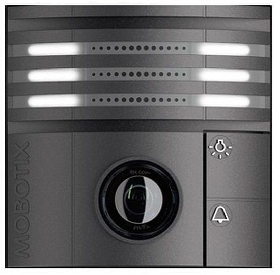 Hemispheric IP door station camera with.Megapixel Moonlight Sensor, B/W (night).ONVIF.compliant Mx6 system platform (2nd generation) with H.264, MxPEG+ and M-JPEG.HD premium fisheye lens B016 (focal length 1.6 mm, f/2.0, 180 degree.180 degree).Max. image size: 6MP (3072.2048).IP65, -30 to 50 degreeC (-22 to 122 degreeF).Internal DVR:.GB microSD.LED lighting strips, two buttons (doorbell, outdoor light), temperature sensor, shock.detector, MxActivitySensor, MxAnalytics, ethernet patch cable 0.5 m/1.6 ft.Interfaces: Ethernet 10/100 (RJ45 and LSA), MxBus, USB.Color: Dark Gray