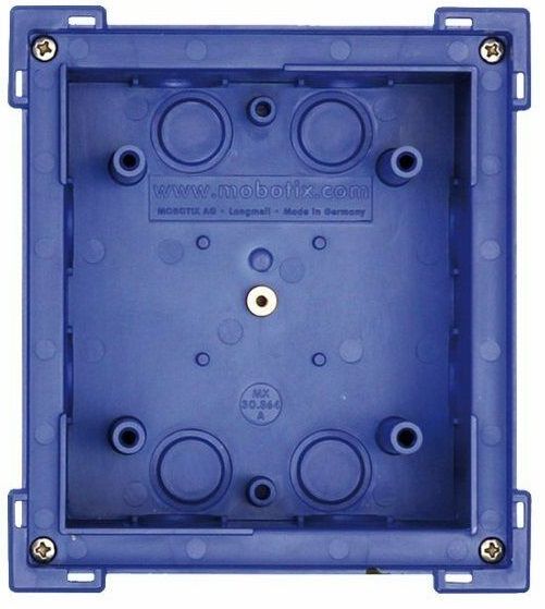 Suitable for:.module, outdoors.The blue housing is firmly connected to the subsurface or brick work. It can also be used to ensure easy installation in cavities: Drill opening, position housing and screw tightly in place; the retaining wings, which automatically swing out, secure the housing, while the plastic bars at the edge of the housing prevent it from sliding into the cavity..Required flushmounting opening: 117.129 mm (width.height).Permissible wall thickness for cavity installation:.to 27 mm