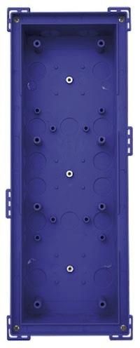 Suitable for:.modules, outdoors.The blue housing is firmly connected to the subsurface or brick work. It can also be used to ensure easy installation in cavities: Drill opening, position housing and screw tightly in place; the retaining wings, which automatically swing out, secure the housing, while the plastic bars at the edge of the housing prevent it from sliding into the cavity..Required flushmounting opening: 117.318 mm (width.height).Permissible wall thickness for cavity installation:.to 27 mm