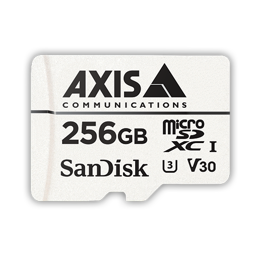 <div class="product-top__product-name"><p class="no-padding-bottom title-attention"><span style="font-size: 18px;"><strong>AXIS Surveillance Card 256GB<br /></strong><span class="tagline">High endurance micro SDXC™ card<br /><br /></span></span></p><ul class="list list-check-circle"><li class="list__item"><span style="font-size: 18px;">Optimized for surveillance cameras</span></li><li class="list__item"><span style="font-size: 18px;">Health monitoring ready</span></li><li class="list__item"><span style="font-size: 18px;">SD card adapter included</span></li><li class="list__item"><span style="font-size: 18px;">3-year warranty</span><br /><br /></li></ul><p><span style="font-size: 18px;">AXIS Surveillance Card 256 GB is a high performing edge storage solution optimized for video surveillance. Edge storage enables flexible storage solutions such as de-centralized video recording and may eliminate the need of an onsite server, DVR or NVR.</span></p><p><span style="font-size: 18px;">In applications with bandwidth limitations, live video can be viewed in low resolution, while high resolution video is recorded locally on AXIS Surveillance Card 256 GB. Combined with Axis Zipstream technology, even high resolution video can be recorded effectively local on AXIS Surveillance Card 256 GB, both for primary storage or as redundancy for failover recording in case of lost connections.</span></p><h2 data-gtm-vis-recent-on-screen-31532331_211="499" data-gtm-vis-first-on-screen-31532331_211="499" data-gtm-vis-total-visible-time-31532331_211="3000" data-gtm-vis-has-fired-31532331_211="1"><span style="font-size: 18px;">Self-contained recording solution</span></h2><div class="js-glossary-terms"><p><span style="font-size: 18px;">AXIS Surveillance Card 256 GB together with your SD-card supported Axis IP-camera makes a self-contained recording solution. It allows for surveillance and recording in locations even without network connectivity.</span><br /><br /><span style="font-size: 18px;"><strong>How much storage do I need?</strong></span></p><div class="js-glossary-terms"><p><span style="font-size: 18px;">The retention time of the card depends on how the cameras are configured to record at different frame rates and resolutions, depending on motion detection, alarm events and hours of the day. As use case we provide two predefined scenarios with a 1080p HDTV camera with medium level of <abbr class="glossarizer_replaced" data-title="The Axis Zipstream technology preserves all the important forensic in the video stream while lowering bandwidth and storage requirements by an average of 50%. Zipstream also includes three intelligent ..."><a class="link" href="https://www.axis.com/glossary#zipstream">Zipstream</a></abbr> provided from AXIS Site designer for comparison:</span></p></div><div><div><div class="paragraph paragraph--type--sub-paragraph paragraph--view-mode--default"><h3 data-gtm-vis-first-on-screen-31532331_108="1205" data-gtm-vis-total-visible-time-31532331_108="3000" data-gtm-vis-recent-on-screen-31532331_108="30069" data-gtm-vis-has-fired-31532331_108="1"><span style="font-size: 18px;">Reception</span></h3><div class="js-glossary-terms"><p><span style="font-size: 18px;">12 hours day time operations with recording triggered by motion detection. An environment with medium motion and smaller number of people passing daily compared to the retail environment. There will be few recordings at nighttime, due to the reduced movement.</span></p></div></div></div><div><div class="paragraph paragraph--type--sub-paragraph paragraph--view-mode--default"><h3 data-gtm-vis-polling-id-31532331_108="167" data-gtm-vis-recent-on-screen-31532331_108="30101" data-gtm-vis-first-on-screen-31532331_108="30101" data-gtm-vis-total-visible-time-31532331_108="2900"><span style="font-size: 18px;">Retail</span></h3><div class="js-glossary-terms"><p><span style="font-size: 18px;">12 hours day time operations with medium motion for a retail environment. More people in motion during opening hours compared to reception. There will be few recordings at nighttime, due to the reduced movement.</span></p></div></div></div></div></div></div><div class="product-top__product-images"><div class="product-img-carousel product-img-carousel--single"><div><a href="https://www.axis.com/sites/axis/files/2020-03/1600_edge-storage-surveillance-card-256gb-2002.png" target="_blank" rel="noopener"><picture><source srcset="/sites/axis/files/styles/square_500x500_gray_background/public/2020-03/1600_edge-storage-surveillance-card-256gb-2002.png.jpg?itok=8j4-wd6v 1x, /sites/axis/files/styles/square_1000x1000_gray_background/public/2020-03/1600_edge-storage-surveillance-card-256gb-2002.png.jpg?itok=bphAbavH 2x" type="image/jpeg" media="(min-width: 1360px)" /><source srcset="/sites/axis/files/styles/square_350x350_gray_background/public/2020-03/1600_edge-storage-surveillance-card-256gb-2002.png.jpg?itok=T0CBSXUP 1x, /sites/axis/files/styles/square_700x700_gray_background/public/2020-03/1600_edge-storage-surveillance-card-256gb-2002.png.jpg?itok=L4A81j4G 2x" type="image/jpeg" media="(min-width: 1024px) and (max-width: 1359px)" /><source srcset="/sites/axis/files/styles/square_500x500_gray_background/public/2020-03/1600_edge-storage-surveillance-card-256gb-2002.png.jpg?itok=8j4-wd6v 1x, /sites/axis/files/styles/square_1000x1000_gray_background/public/2020-03/1600_edge-storage-surveillance-card-256gb-2002.png.jpg?itok=bphAbavH 2x" type="image/jpeg" media="(min-width: 768px) and (max-width: 1023px)" /><source srcset="/sites/axis/files/styles/square_700x700_gray_background/public/2020-03/1600_edge-storage-surveillance-card-256gb-2002.png.jpg?itok=L4A81j4G 1x, /sites/axis/files/styles/square_1400x1400_gray_background/public/2020-03/1600_edge-storage-surveillance-card-256gb-2002.png.jpg?itok=pdTBtbsM 2x" type="image/jpeg" media="(min-width: 576px) and (max-width: 767px)" /><source srcset="/sites/axis/files/styles/square_500x500_gray_background/public/2020-03/1600_edge