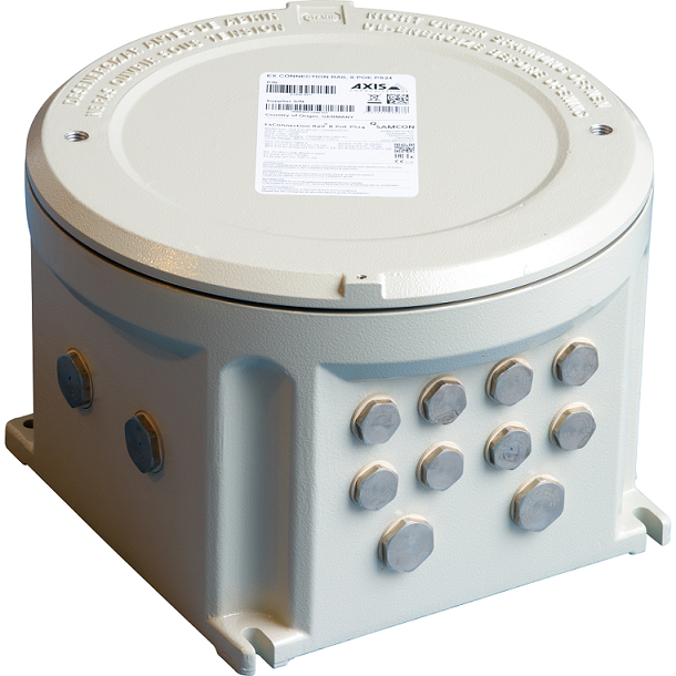 AXIS 01536-001 - Explosion-protected PoE switch and power supply for use with up to 8 ExCam cameras, certified for use in hazardous areas according to ATEX and IECEx, in an Ex d copper free and sea water resistant aluminum enclosure
