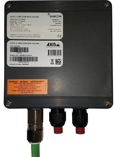 <div class="product-top__product-name"><p class="no-padding-bottom title-attention"><span style="font-size: 18px;"><strong>EXTB-3 Junction Box ExCam</strong></span><br /><span class="tagline" style="font-size: 18px;">For explosion-protected network cameras<br /><br /></span></p><ul class="list list-check-circle"><li class="list__item"><span style="font-size: 18px;">Resistant to heat, water, dust, and impact</span></li><li class="list__item"><span style="font-size: 18px;">Ex e certified</span></li><li class="list__item"><span style="font-size: 18px;">Easy to install and maintain</span></li><li class="list__item"><span style="font-size: 18px;">Terminal connector and pre-mounted 3x cable glands included<br /><span style="font-size: 14px;">*NB Order on Demand item, please check stock with your local store.</span><br /><br /></span></li></ul><div class="row"><div class="col-xs-12"><div class="product-page__preamble--large product-page__preamble"><p style="text-align: center;"><span style="font-size: 18px;"><strong>EXTB-3 Junction Box ExCam is Ex e certified for explosion-protected network cameras in AXIS ExCam Series.</strong></span></p></div></div></div><div class="product-overview"><div class="paragraph-wrapper"><div class="paragraph-one-col-text"><div class="row"><div class="col-xs-12 col-sm-8 col-sm-offset-2"><h2 data-gtm-vis-first-on-screen-31532331_211="58729" data-gtm-vis-total-visible-time-31532331_211="3000" data-gtm-vis-has-fired-31532331_211="1"><span style="font-size: 18px;">Safety first</span></h2><div class="js-glossary-terms"><p><span style="font-size: 18px;">Ex e defines an explosion protection method for gas environments that prohibits arcs, sparks, or hot surfaces.</span></p></div></div></div></div></div><div class="paragraph-wrapper"><div class="paragraph-one-col-text"><div class="row"><div class="col-xs-12 col-sm-8 col-sm-offset-2"><h2 data-gtm-vis-first-on-screen-31532331_211="61289" data-gtm-vis-total-visible-time-31532331_211="3000" data-gtm-vis-recent-on-screen-31532331_211="63609" data-gtm-vis-has-fired-31532331_211="1"><span style="font-size: 18px;">Easy installation and maintenance</span></h2><div class="js-glossary-terms"><p><span style="font-size: 18px;">The included terminal connector and pre-mounted 3x cable glands provide easy maintenance. One of the cable glands is suitable for ASKDP03-T Armored Cable ExCam and the other two match SKDP03-T Cable ExCam. The cable glands are intended for connecting a camera in the ExCam-series to midspans and power sources.</span></p><div class="col-xs-12 col-md-10 col-md-offset-1 title-col"><h2 data-gtm-vis-first-on-screen-31532331_211="62222" data-gtm-vis-total-visible-time-31532331_211="3000" data-gtm-vis-recent-on-screen-31532331_211="97350" data-gtm-vis-has-fired-31532331_211="1">Compatible products</h2></div><div class="col-xs-12 no-padding-top no-padding-bottom"><div class="row"><table style="height: 98px;" border="yes" width="734"><tbody><tr><td style="width: 140.475px;"><div class="accessory-card__media"><img src="https://www.axis.com/sites/axis/files/styles/square_125x125_jpg/public/2020-03/1600_excam-xf-m3016-angle-left-1910.png.jpg?itok=eyF8lEzc" width="125" height="125" alt="ExCam XF M3016 Explosion-Protected IP Camera in stainless steel" loading="lazy" typeof="foaf:Image" style="display: block; margin-left: auto; margin-right: auto;" /></div><div class="accessory-card__text" style="text-align: center;"><h4 style="text-align: center;">ExCam XF M3016 Explosion-Protected Network Camera</h4>Safety without compromise</div></td><td style="width: 140.475px;"><div class="accessory-card__media"><img src="https://www.axis.com/sites/axis/files/styles/square_125x125_jpg/public/2019-12/1600_excam_xf_p1367_angle_right_1802.png.jpg?itok=u3ygBqz5" width="125" height="125" alt="ExCam XF P1367 Explosion-Protected IP Camera viewed from its right angle" loading="lazy" typeof="foaf:Image" style="display: block; margin-left: auto; margin-right: auto;" /></div><div class="accessory-card__text" style="text-align: center;"><h4 style="text-align: center;">ExCam XF P1367 Explosion-Protected Network Camera</h4>Superb light sensitivity in hazardous areas</div></td><td style="width: 140.475px;"><div class="accessory-card__media"><img src="https://www.axis.com/sites/axis/files/styles/square_125x125_jpg/public/2020-01/1600_excam_xf_q1645_angle_left_1901.png.jpg?itok=K7dSrEjG" width="125" height="125" alt="ExCam XF Q1645 Explosion-Protected IP Camera from left" loading="lazy" typeof="foaf:Image" style="display: block; margin-left: auto; margin-right: auto;" /></div><div class="accessory-card__text" style="text-align: center;"><h4 style="text-align: center;">ExCam XF Q1645 Explosion-Protected Network Camera</h4>Every detail counts in hazardous areas</div></td><td style="width: 140.475px;"><div class="accessory-card__media"><img src="https://www.axis.com/sites/axis/files/styles/square_125x125_jpg/public/2019-12/1600_excam_xf_q1785_angle_right_1901.png.jpg?itok=KFIqxZ5c" width="125" height="125" alt=" ExCam XF Q1785 Explosion-Protected IP Camera from right" loading="lazy" typeof="foaf:Image" style="display: block; margin-left: auto; margin-right: auto;" /></div><div class="accessory-card__text" style="text-align: center;"><h4 style="text-align: center;">ExCam XF Q1785 Explosion-Protected Network Camera</h4>Top-tuned for hazardous applications</div></td><td style="width: 140.5px;"><div class="accessory-card__media"><img src="https://www.axis.com/sites/axis/files/styles/square_125x125_jpg/public/2020-06/excam-xpt-q6055-1806.png.jpg?itok=xeNs373Z" width="125" height="125" alt="ExCam XPT Q6075 Explosion-Protected PTZ Camera in stainless-steel, viewed from its front. " loading="lazy" typeof="foaf:Image" style="display: block; margin-left: auto; margin-right: auto;" /></div><div class="accessory-card__text" style="text-align: center;"><h4 style="text-align: center;">ExCam XPT Q6075 Explosion-Protected PTZ Camera</h4>Real-time movement and control in hazard