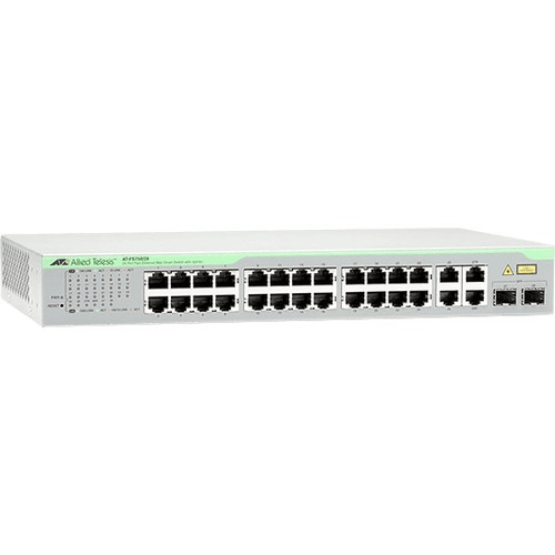 Allied Telesis WebSmart switch 24-port 10/100TX + 2 10/100/1000T + 2 SFP/1000T Combo Ports, AU Power Cord.