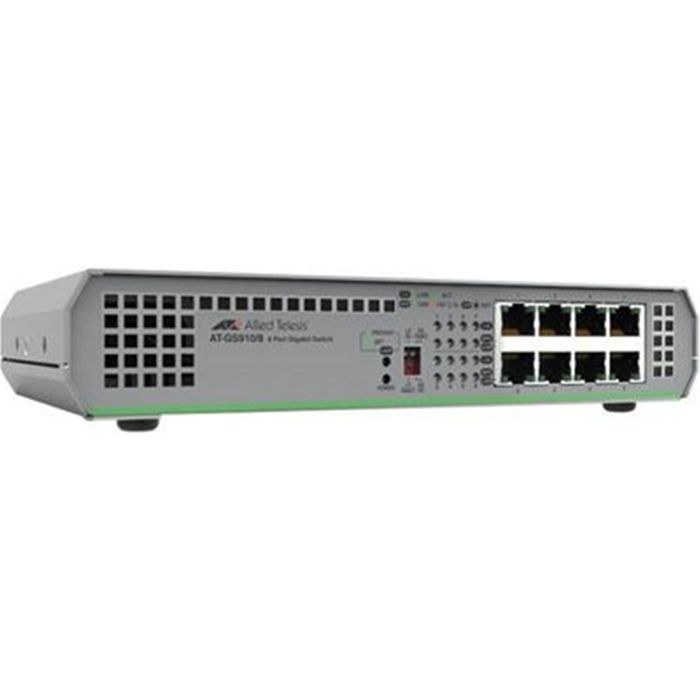 Allied Telesis 8 port 10/100/1000T unmanaged switch with internal PSU, AU Power Cord.