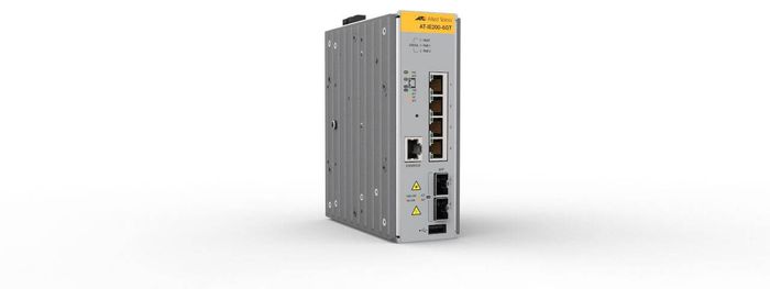Allied Telesis Industrial managed switch, 4 x 10/100/1000T ports and 2 x 100/1000X SFP, DC power supplies. Requires purchase of Net.Cover for Support and Software Updates.