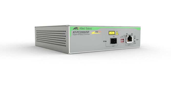 Allied Telesis Media converting 2-port Gigabit switch, 10/100/1000T POE+ to 1000X (SFP), TAA compliant
